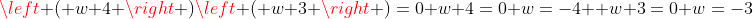 \left ( w+3 \right )=0 \\w+4=0 \\w=-4 \\ \\w+3=0 \\w=-3)