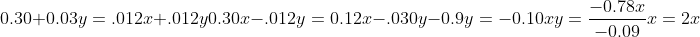 Numero de litros de la mezcla x+y=30 oxigeno en la mezcla al 12% .012 (x+y)