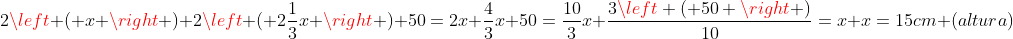+2\left ( 2\frac{1}{3}x \right ) \\50=2x+\frac{4}{3}x \\50=\frac{10}{3}x \\\frac{3\left ( 50 \right )}{10}=x \\x=15cm (altura))